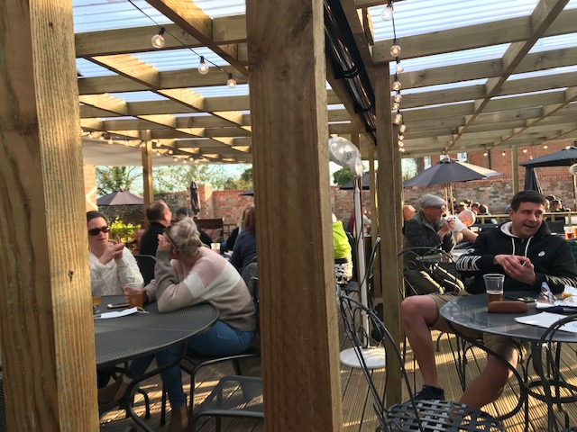 Now we went on the first Saturday the (outside of) pubs were open. It was busy. Very busy. They’d put on extra staff to cover the demand, but it wasn’t easy for them. So there were a few minor delays getting ordered and served, but once I’d had a couple, my politeness was replaced by the brash cockiness that alcohol taken in the blazing sun tends to give idiots like me. And so I soon adopted an attention-seeking wave/nod/wink combo that would be embarrassing to watch back had it been filmed.